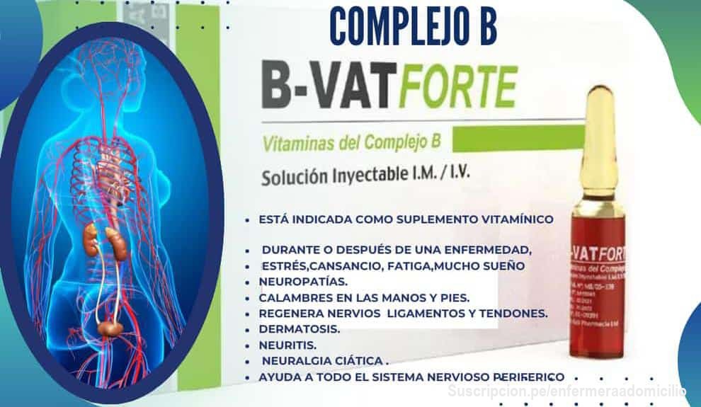 B-VAT Forte Solución inyectable está indicado como suplemento vitamínico y para prevenir la deficiencia de los siguientes síntomas: Durante o después de una enfermedad, cansancio, fatiga, pérdida de peso, disminución del apetito, enfermedad del tracto gastrointestinal, dermatosis, neuritis, neuralgia ciática, deficiencias de vitaminas B, embarazo, terapia para efectos adversos de agentes quimioterápicos.